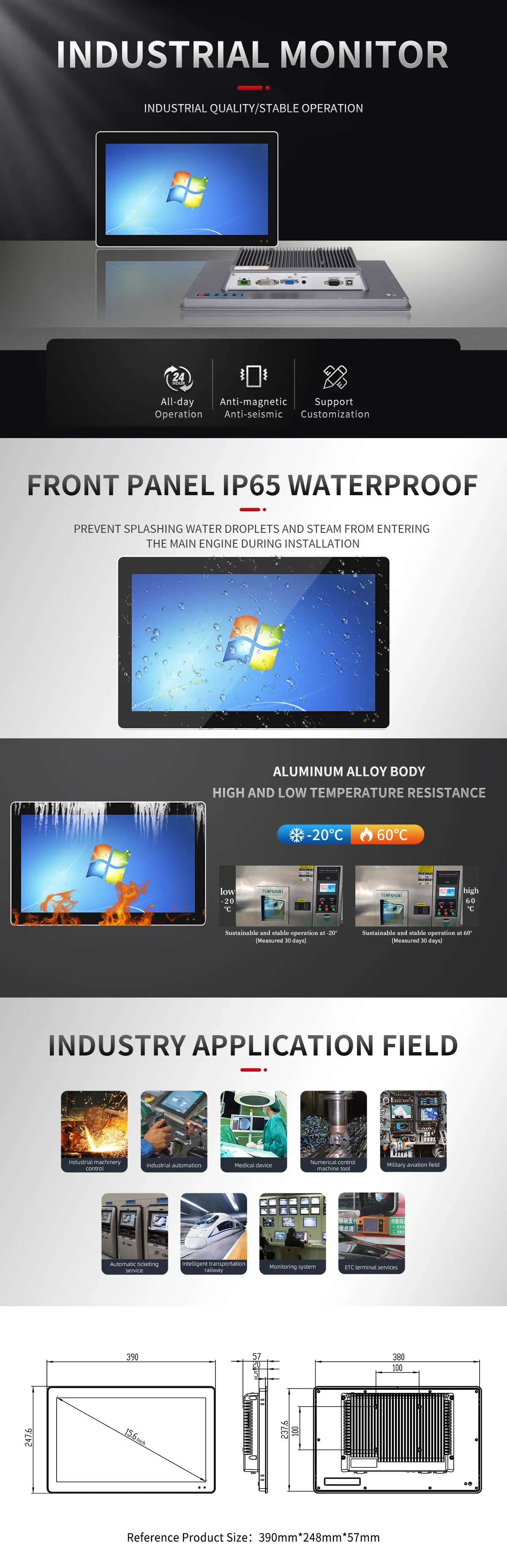 - Front panel IP65 water and dust proof