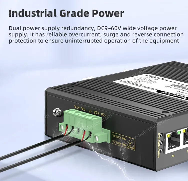 ● Supports dual power supply redundancy DC9~60V and single power supply AC85-264V/DC110-370V