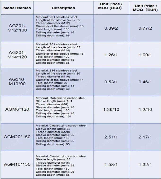 Thread diameter: M6