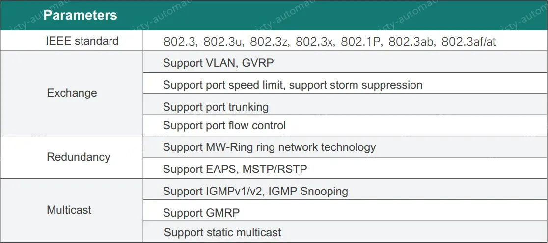PoE switch adopts high-performance imported switching chip, supports IEEE802.3af/at standard, supports 10/100/100M adaptive PoE electrical port, single port maximum power of 30W! Support -40~85 ° C operating temperature, DC48-52V dual power supply redundancy, support power failure alarm output! Indicator status, guide mounting, fan-less thermal housing design, can adapt to a variety of harsh industrial environment application needs.