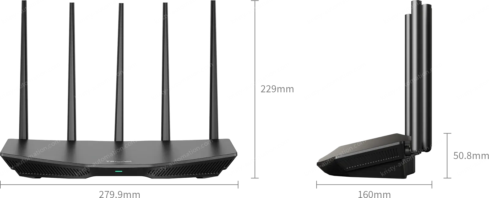 External omnidirectional antennas: 2 x 2.4G antennas, 3 x 5G antennas