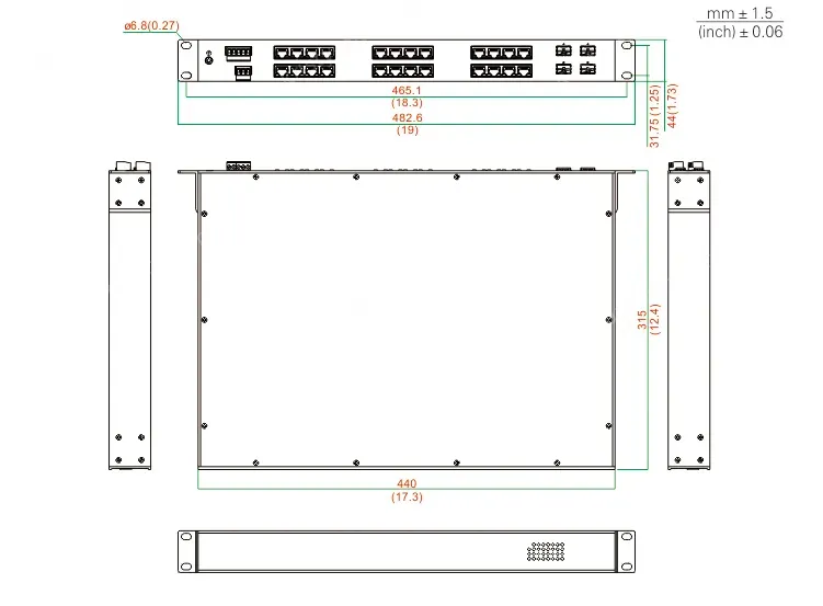 UOTEK 24+4G Rackmount 10/100M Unmanaged Industrial Ethernet Switch