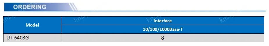 Ethernet: 8*Gigabit RJ45, support 10/100/1000Base-T