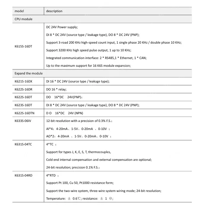 Expansion modules (Expansin Module) are modules used to extend the functionality of the CPU itself. There are many types of expansion modules with numerous ports, and the K6 series CPU can connect up to 14 expansion modules, forming a larger control system.
