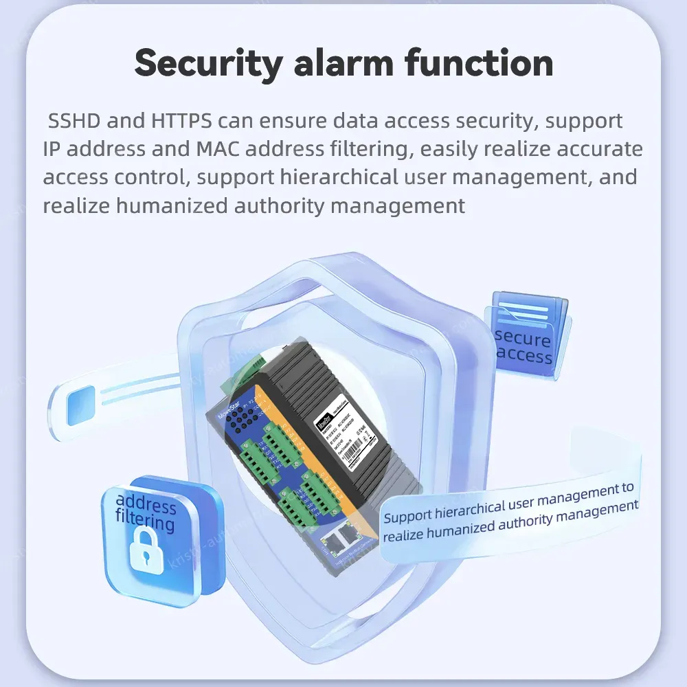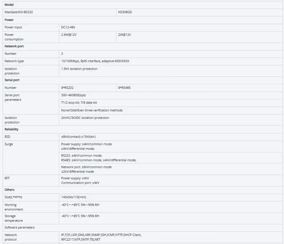 Industrial serial port server series products, mainly realize the data transmission between Ethernet and serial port (RS-232/RS-485/RS-422), it integrates the TCP/IP protocol stack, RS-232/RS-485/RS-422 devices that are not connected to the Internet can also be easily, flexibly and quickly connected to Ethernet. The series of products use high-performance ARM chip to ensure stable data transmission; Support a variety of working modes to meet different application requirements; Excellent anti-interference performance, suitable for harsh industrial environments.