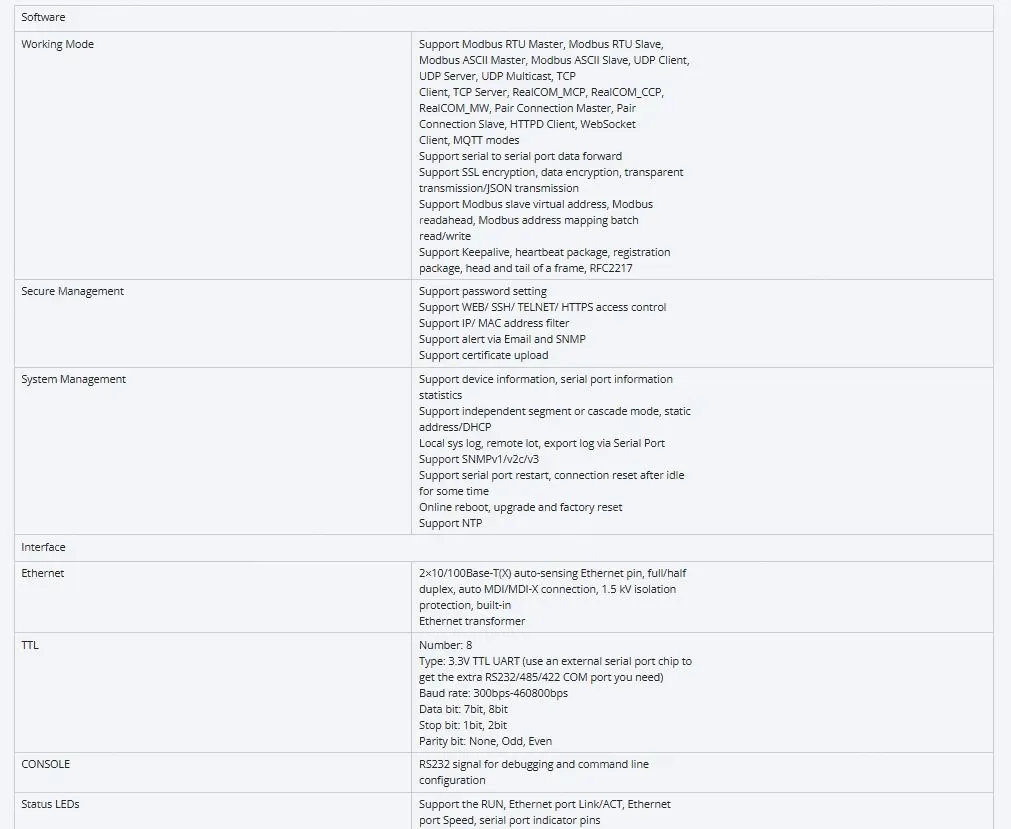 ● Support Modbus slave pre-reading, single port automatically learns up to 256 RTU or 128 ASCII commands, pre-reading data to achieve rapid response.