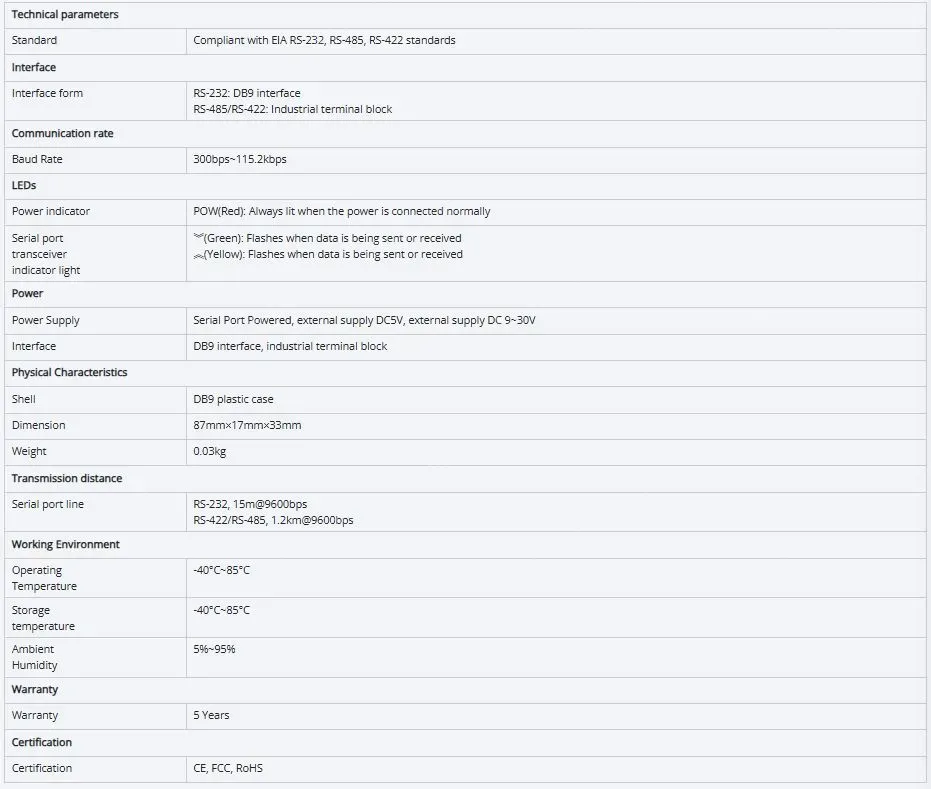 The Star shifting interface converter products include three major series:Industrial serial optical fiber converter can convert the industrial site RS232/485/422 serial electrical signal into optical fiber signal transmission, to achieve long-distance transmission requirements, improve signal anti-interference ability;Industrial serial cable converter, to achieve the industrial site RS232 and RS485/422 signals between the conversion, as well as multiple serial bus concentrator function, provide active/passive, isolated/non-isolated and other types of choice;Industrial serial port repeater can realize the isolation relay function of RS232/485/422 signal in industrial field. By isolating and amplifies the signal, it can extend the communication distance and anti-interference.