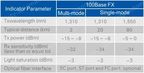 Fiber port: 1x 100Base-FX port(with optional SC, ST, FC & LC)