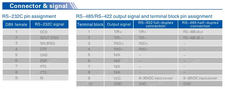 - Standards: RS-232C/ RS-485, /RS-422 EIA/TIA